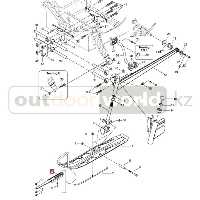Подходит на следующие модели: Touring 380 F/500F, 2001-->07- Front Suspension And Ski Touring E, 1999-->07- Front Suspension And Ski Touring E, 2000-->07- Front Suspension And Ski Touring LE, 1999-->07- Front Suspension And Ski Touring LE, 2000-->07- Front Suspension And Ski Touring SLE, 1999-->07- Front Suspension And Ski Touring SLE, 2000-->07- Front Suspension And Ski
