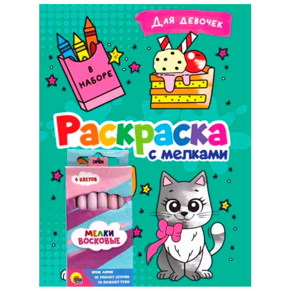 Раскраска с мелками – увлекательное развлечение для детей, которое помогает развивать творческие способности и мелкую моторику. В комплекте идут яркие мелки, с которыми раскрашивание становится еще более веселым и красочным!<br> <br> Зачем она нужна?<br> - Развивает воображение и творческие навыки.<br> - Помогает улучшить внимание, терпение и координацию.<br> - Идеально подходит для детей, которые любят рисовать и раскрашивать.<br> <br> Яркие и разнообразные иллюстрации<br> - В раскраске представлены яркие и интересные изображения, которые дети смогут раскрашивать с помощью мелков.<br> - Рисунки идеально подходят для детей разного возраста и уровня подготовки.<br> <br> Комплект с мелками<br> - В наборе идут качественные мелки, которые удобно держать в руках и легко наносят цвет.<br> - Мелки не пачкают руки, и они обеспечивают яркий и насыщенный цвет на бумаге.<br> <br> Легкость в использовании<br> - Простые и понятные изображения, которые легко раскрашивать, помогают развивать усидчивость и аккуратность.<br> - Отлично подходит как для самостоятельных игр, так и для совместного творчества с родителями.<br> <br> Безопасность и качество<br> - Все материалы в наборе безопасны для детей.<br> - Мелки и бумага произведены из высококачественных и нетоксичных материалов.<br> <br> Идеальный подарок<br> <br>